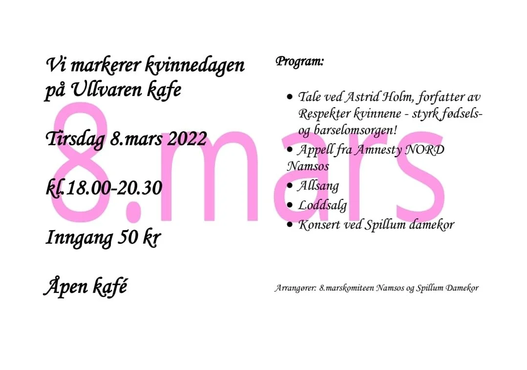 Kvinnedagen markeres med tale, appeller og underholdning på Ullvaren kafe kl. 18:00.